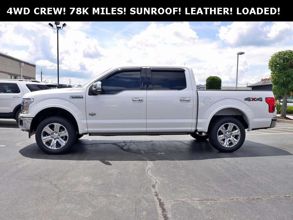 2018 Ford F-150 King Ranch! WOW, WHAT A BEAUTIFUL FULL SIZE FORD F150 HERE! FOUR WHEEL DRIVE CREW CAB IN A KING RANCH! AUTOMATIC TRANSMISSION! 5.0 LITER V8 ENGINE! CLEAN CARFAX AND VERY VERY WELL CARED FOR! ONLY 78K MILES! TECHNOLOGY PACKAGE AND EQUIPMENT GROUP 601A! HUGE PANORAMIC SUNROOF! HEATED AND COOLED LEATHER SEATS WITH DUAL POWER! HEATED STEERING WHEEL! EVEN HEATED REAR SEATS! NAVIGATION AND 360 DEGREE CAMERA! BLIND SPOT MONITORING, PRE COLLISION ASSIST AND PEDESTRIAN DETECTION! ADAPTIVE CRUISE CONTROL! APPLE CAR PLAY AND ANDRIOD AUTO WITH B&O PREMIUM SOUND QUALITY! TOW PACKAGE, POWER RUNNING BOARDS, AND A BED LINER! REMOTE TAILGATE RELEASE! POWER SLIDING REAR WINDOW! REMOTE START! PREMIUM WHEELS AND KEYLESS ENTRY WITH PUSH BUTTON START! BLUETOOTH AND SATELLITE RADIO! THIS FOUR WHEEL DRIVE CREW CAB KING RANCH HAS SO MUCH EQUIPMENT! SUPER CLEAN!