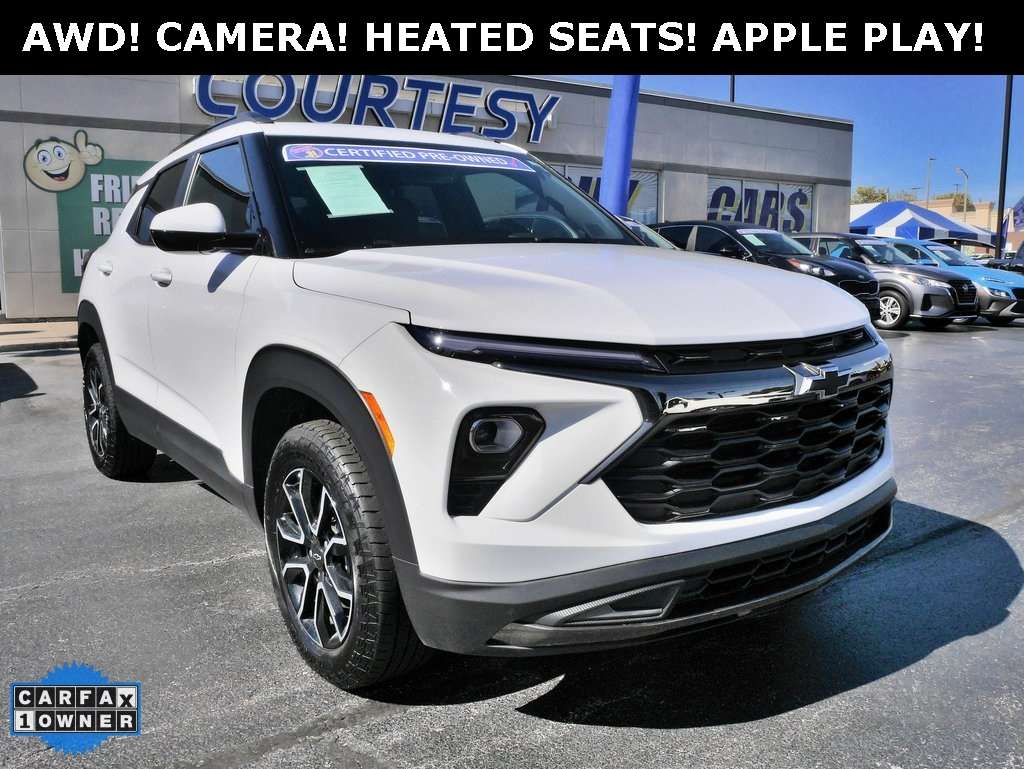 2024 Chevrolet TrailBlazer ACTIV! ALL WHEEL DRIVE! ONLY 20K MILES! CLEAN CARFAX AND A PREVIOUS ONE OWNER! FULL FACTORY WARRANTY STILL REMAINING! SUPER SUPER SHARP CHEVY SPORT UTILITY TRAILBLAZER! AUTOMATIC TRANSMISSION! OUTSTANDING FUEL ECONOMY! CONVENIENCE PACKAGE AND DRIVER CONFIDENCE PACKAGE! REAR VIEW CAMERA! HEATED SEATS AND A HEATED STEERING WHEEL! BLIND ZONE ALERT! LANE KEEP ASSIST AND PEDESTRIAN BRAKING! FORWARD COLLISION ALERT! EMERGENCY BRAKING! REAR POWER LIFTGATE! APPLE CAR PLAY AND ANDRIOD AUTO! BLUETOOTH AND SATELLITE RADIO! WIRELESS CHARGING! REMOTE START! LUGGAGE RACK, PREMIUM ALLOY WHEELS, AND KEYLESS ENTRY WITH PUSH BUTTON START! SUPER CLEAN ALL WHEEL DRIVE CHEVY SUV HERE WITH LOW LOW MILES!
