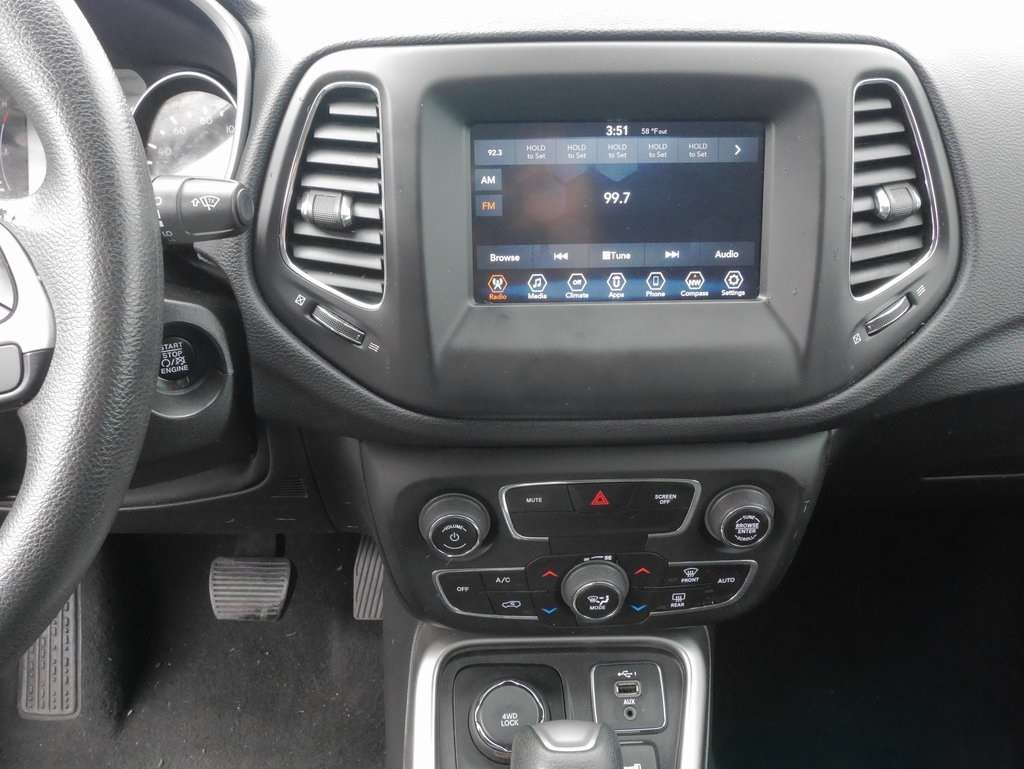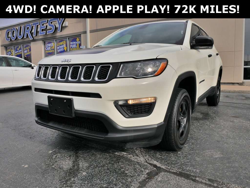 2019 Jeep Compass Sport! FOUR WHEEL DRIVE! CLEAN CARFAX AND VERY WELL CARED FOR! AUTOMATIC TRANSMISSION! GREAT FUEL ECONOMY! REAR BACKUP CAMERA! APPLE CAR PLAY AND ANDRIOD AUTO! KEYLESS ENTRY! BLUETOOTH AND SATELLITE RADIO! POWER PACKAGE WITH CRUISE CONTROL! ONLY 72K MILES! PERFECT FOR A FIRST TIME DRIVER OR A FAMILY MEMBER! LOW LOW PAYMENTS AVAILABLE AS WELL ON THIS FOUR WHEEL DRIVE JEEP!