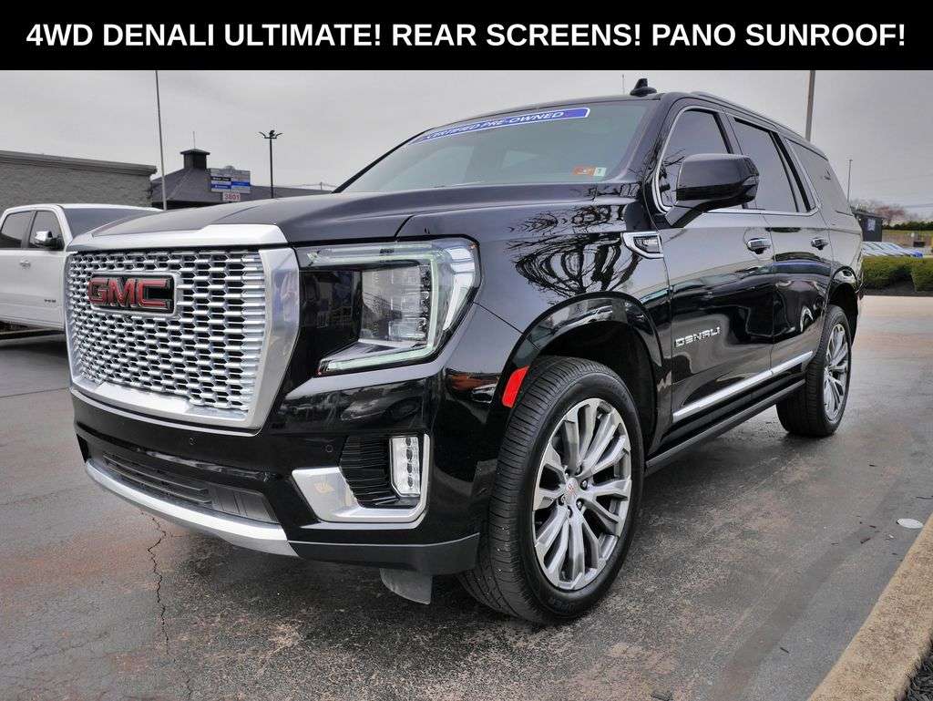 2022 GMC Yukon Denali! FOUR WHEEL DRIVE! DENALI ULTIMATE PACKAGE! CLEAN CARFAX AND VERY VERY WELL CARED FOR! THIS FULL SIZE FAMILY GMC IS BEAUTIFUL! LOADED UP WITH ALL THE OPTIONS! AUTOMATIC TRANSMISSION! 6.2 LITER V8 ENGINE! $13100 DOLLARS WORTH OF OPTIONS! 10.2 INCH TOUCHSCREEN WITH NAVIGATION AND 360 DEGREE CAMERA! REAR ENTERTAINMENT IN THE HEADRESTS! HUGE PANORAMIC SUNROOF! HEATED AND COOLED LEATHER SEATS WITH DUAL POWER! REAR HEATED SEATS! HEATED STEERING WHEEL! APPLE CAR PLAY AND ANDRIOD AUTO WITH BOSE PREMIUM SOUND! MIDDLE CAPTAIN CHAIRS AND POWER THIRD ROW SEATING! HEADS UP DISPLAY! BLIND SPOT DETECTION AND REAR CROSS TRAFFIC ALERT! FORWARD COLLISION WARNING AND EMERGENCY BRAKING! LANE KEEPPING ASSIST AND DEPARTURE! DRIVER ATTENTION WARNING AND PEDESTRIAN DETECTION! REAR POWER LIFTGATE! POWER RUNNING BOARDS! 22 INCH PREMIUM WHEELS, REMOTE START, AND KEYLESS ENTRY WITH PUSH BUTTON START! BLUETOOTH AND SATELLITE RADIO! TO MANY OPTIONS TO LIST THATS FOR SURE! AWESOME FULL SIZE GMC DENALI SUV HERE AT COURTESY! THIS PERFECT FOR A FAMILY!